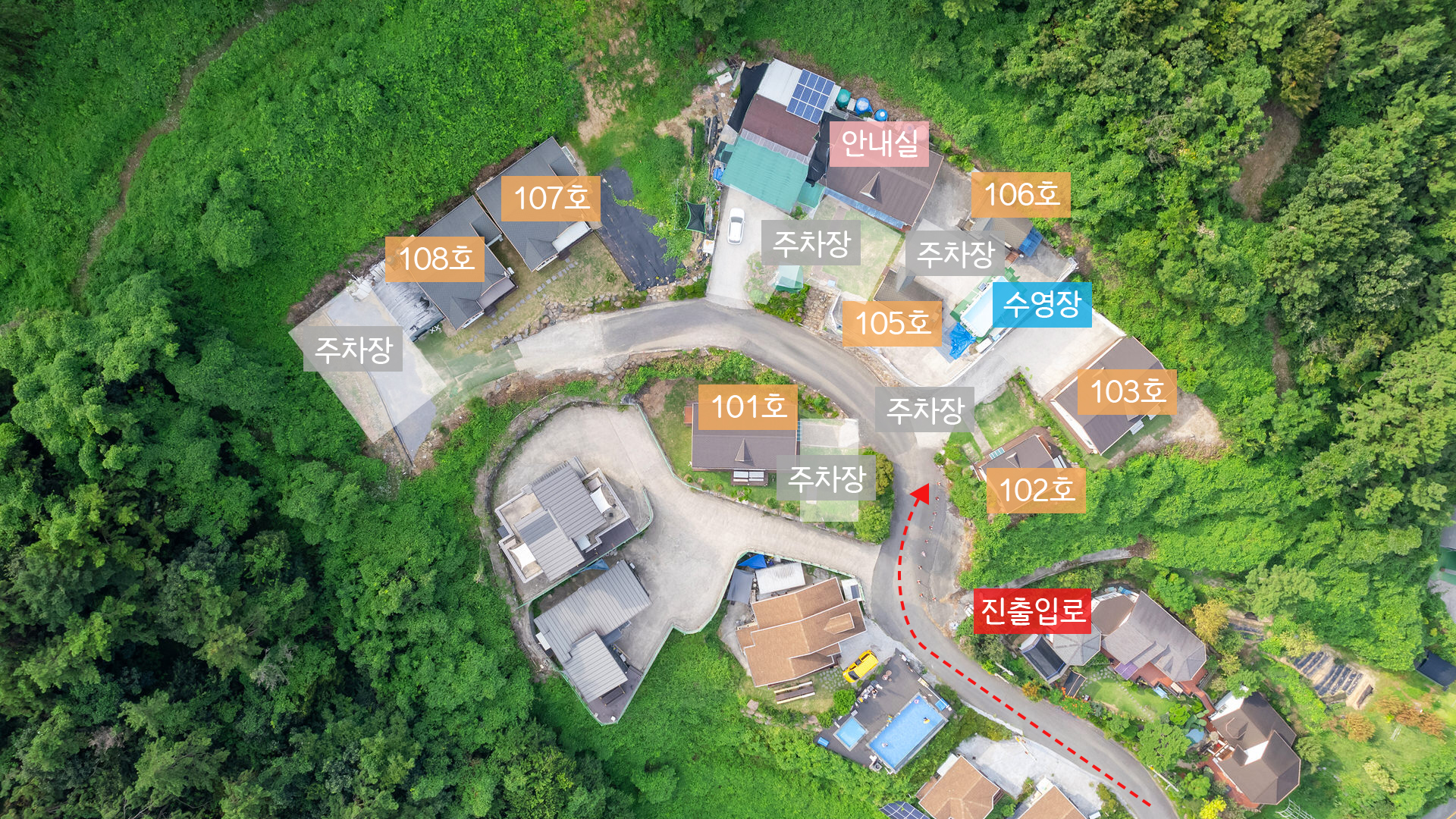 순천 전망좋은곳펜션 배치도 안내입니다.